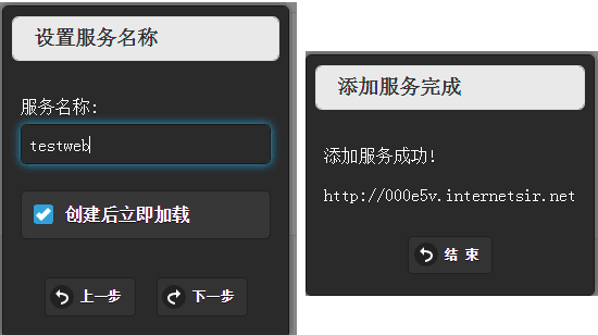 2.3.保存时,会检查设置是否正确,成功后自动为该服务分配一个免费的二级域名,如下图所示: