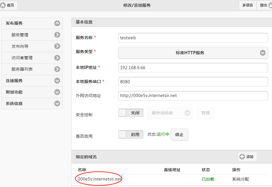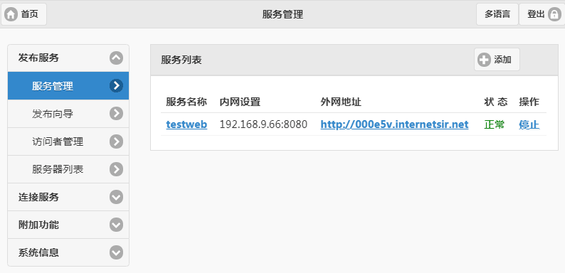 生成的访问地址在盒子所在的局域网内都可以访问,访问这个地址如同访问了远程发布的内网服务了。如下图所示: