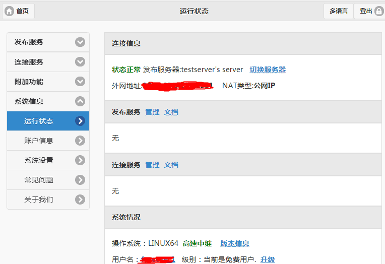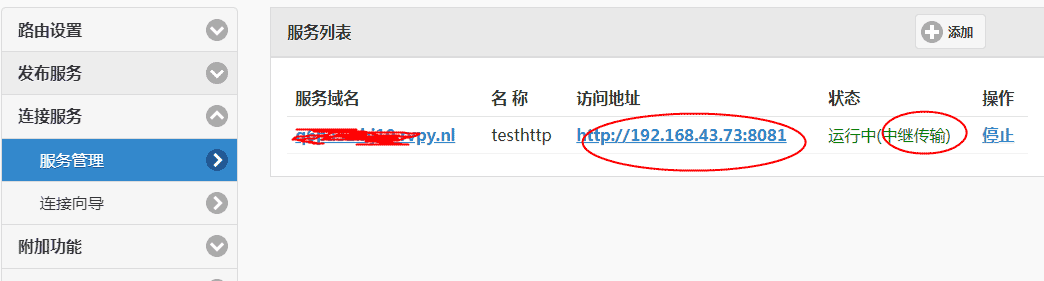 在另外一个逆代理设备或服务中登录进去后,点击“连接服务”-->"服务管理",如下图所示: