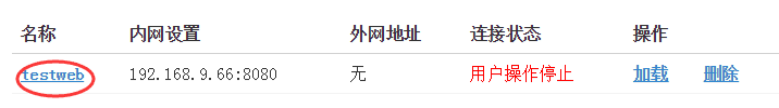 4.先点击“停止”,停止发布的服务,再点击的服务名称,例如上图"testweb",进入修改状态,然后在域名列表里面点击