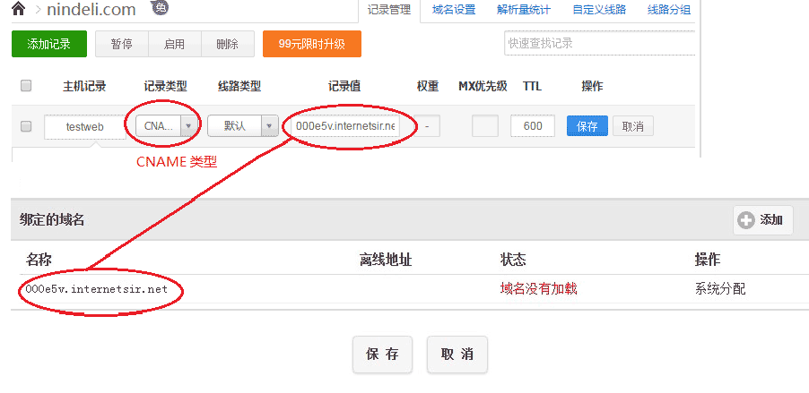 设置该域名对应的cname为“000e5v.internetsir.net”。