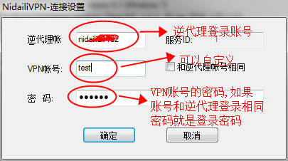 4)连接时,用户名和密码是逆代理VPN服务配置得到如何设置逆代理VPN服务 ,